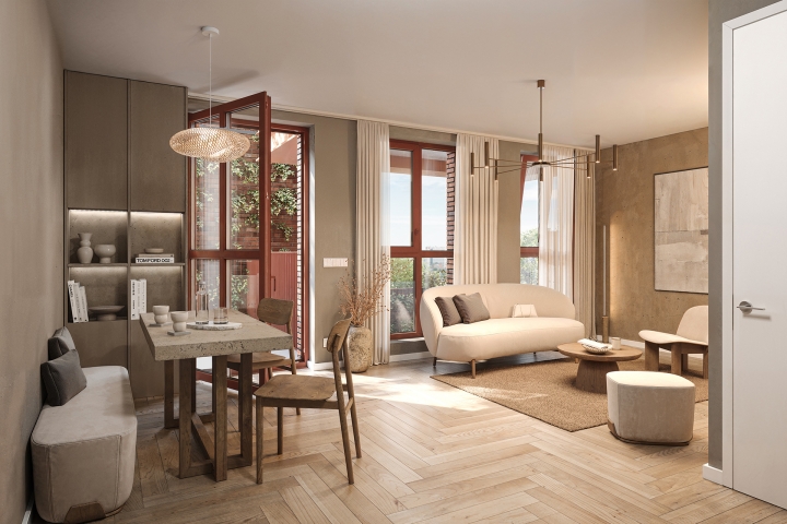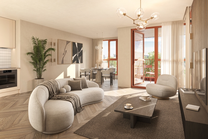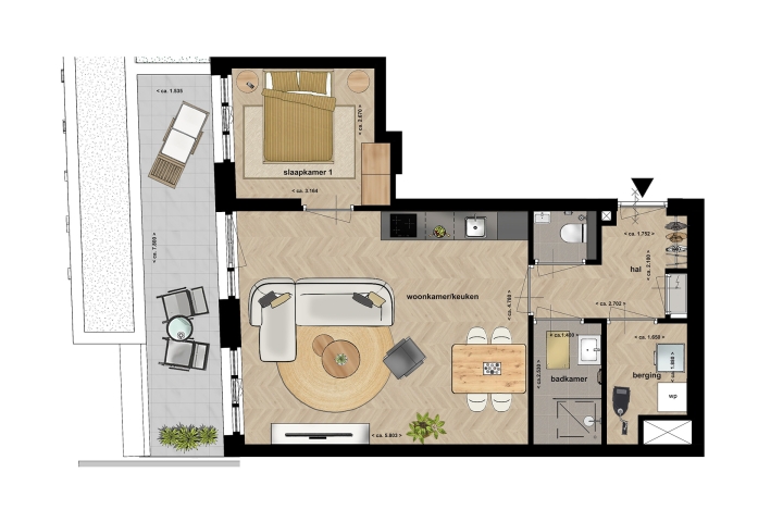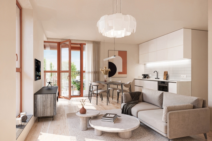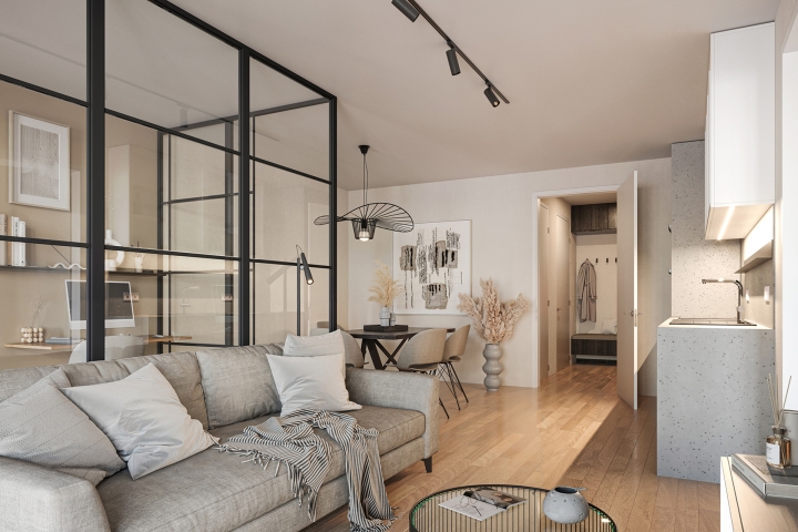 Type Via is voor wie bewust kiest. Met circa 58 m² woonoppervlak en 1 of 2 slaapkamers is dit de meest compacte variant binnen Via Insulae. Maar vergis je niet, elke meter is slim benut. De woonkamer is licht en efficiënt ingedeeld. De open keuken vormt het hart van de ruimte.